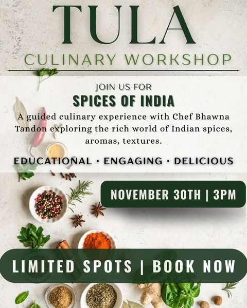 A hands-on, sensory introduction to essential Indian spices — guided by Chef Bhawna as she shows you how they’re bloomed and blended to build deep, memorable flavours. You’ll learn the stories behind each spice and sample a few small flavour demonstrations that highlight the techniques. A calm, cozy Sunday afternoon inside Little Straw Winery.